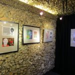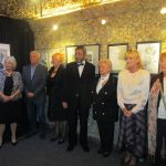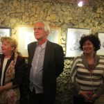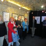 Halk zsongás, fel-felhangzó nevetés, visszafojtott, néha hangosabb párbeszédek nesze hallik; a közönség soraiban érzékelhetően nagy a várakozás, amikor Keserű András, a Ház szakmai referense és Fábry János, szakosztályunk elnöke jó humorú, frappáns bevezető szavait követően Kemény János megnyitotta a tárlatot, tőle a Tarka Színpad művészei vették át a szót. Az egymás után fellépő előadók kedvesek és barátságosak, ahogy a nyers kőfalak háttere előtt felfüggesztett, rajzolt képek előtt mondják verseiket, vagy éneklik-táncolják el dalaikat. E számukra – feltehetően – nem megszokott szellemi környezet mintha mégis inspirálná őket a jókedv és kitűnő hangulat megteremtésére, ami létre is jön. Ez a mosolygós, együttes élmény minden jelenlévő számára élmény marad. A Közösségi Ház munkatársai és Keczely Gabriella által tervezett meghívó