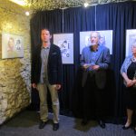 A jelenlévőket köszöntő Keserű András kulturális referens (balra), mellette a kiállítást megnyitó Kemény János és Ster Erika
