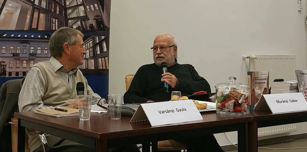 A MÚOSZ Rát-Táncsics termében nagy érdeklődéssel követték kollégák és barátok a szerzőt Varsányi Gyulát és az őt felkészülten faggató Murányi Gábort, a HVG munkatársát.