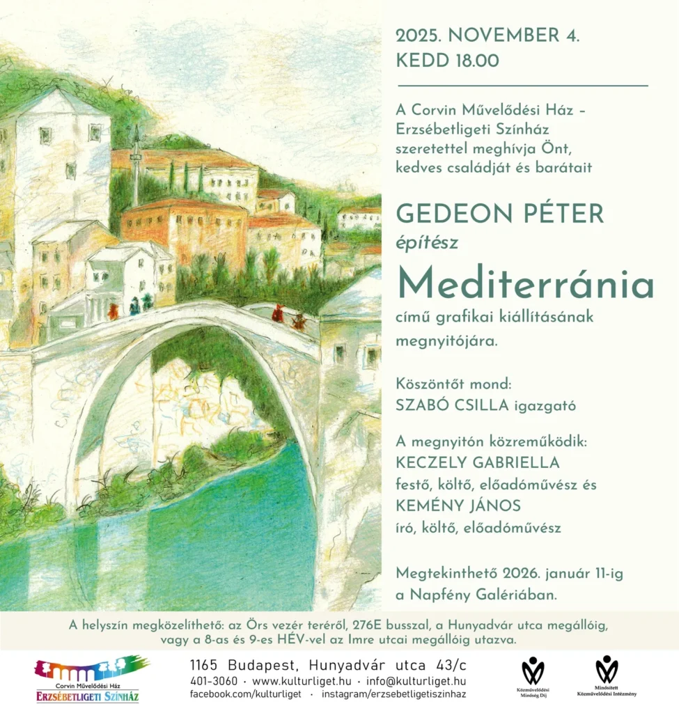 Gedeon Péter kiállításmegnyitója november 4-én, kedden 18.00-tól a Corvin művelődési házban (1165 Budapest Hunyadvár u 43/c) a Napfény Galériában lesz és 2026 január 11-ig tekinthető meg.