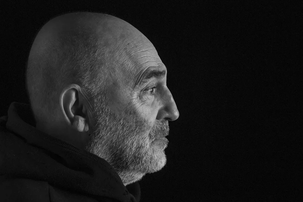 A „hineni”, jelentése „Itt vagyok!” Ha az Isten szólít, kérhet tőlem, készen állok…– Feldmár András szavai ezek, miután megnézte a képet, amit elképzeltem, amin egyszerűen csak áll a fekete semmiben, egyedül.