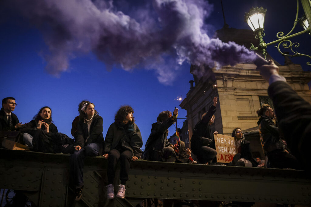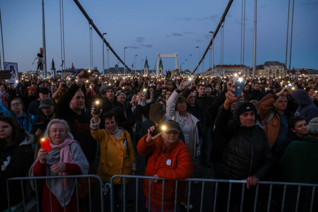 Zsinórban harmadik keddre hirdetett tüntetést Hadházy Ákos és a Momentum a gyülekezési jog korlátozása és a Pride betiltása ellen Budapesten 2025.04.01-én. Hadházy Ákos szerint addig kell tiltakozni, amíg nem vonják vissza a gyülekezési törvény módosítását. A Margit hídon tartott beszédek után a Momentum felhívására elindult a tömeg, és elfoglalták a Szabadság hidat, a Petőfi hidat és a Margit hidat is.