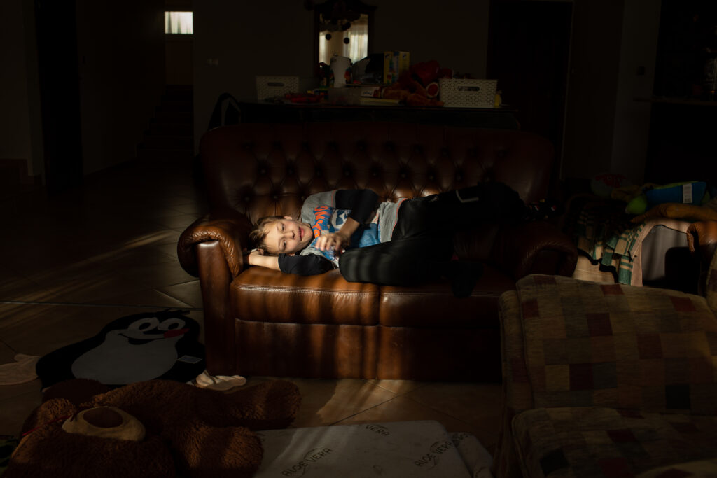The images document his everyday life, interactions with family, and moments of his daily routine and play highlighting individuality and human experience.