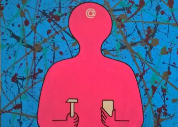 Lenni, vagy nem lenni?... - 60x60 akril, vászon. Pálfy Julianna és Pálfy István Putyu, a MÚOSZ Karikatúraművészeti Szakosztály tagjai is...